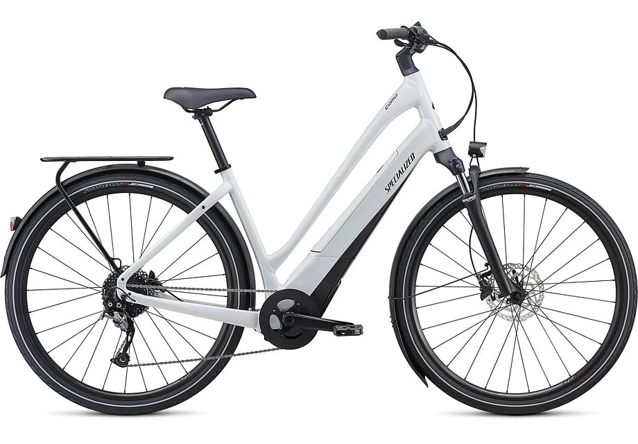Specialized Como 3.0 kaupunkisähköpyörä mukavan pystyllä ajoasennolla. Varustettu Specialized 1.2E moottorilla ja 460Wh akulla. Täysin varusteltu, ainoastaan lukko hankittava erikseen.