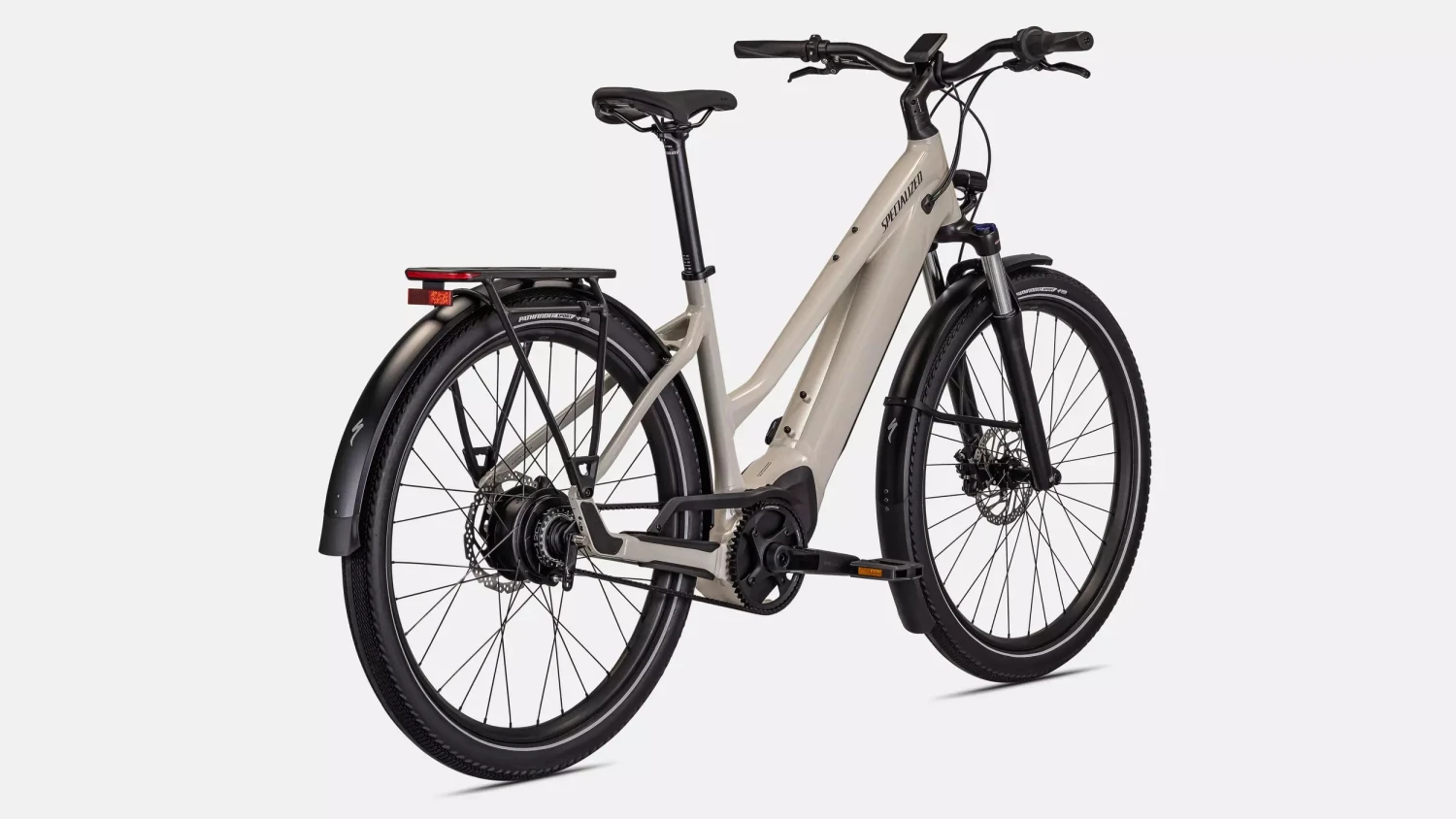 - Varustettu DRYTECH-lokasuojilla, LED-etu- ja takavalolla ja HD-tavaratelineellä, jonka kantokyky on 27 kg. Tavarateline on yhteensopiva lastenistuimien kanssa, ja pyörä on myös mitoitettu vetämään perävaunua.